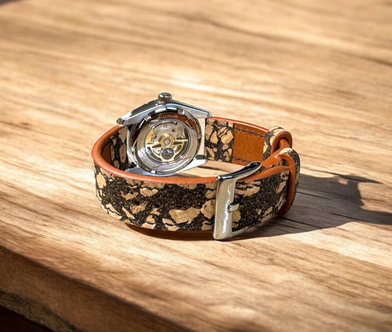 M.M01 - Date - Desert Sand 36mm - Jaspe Paysage Dial - bracelet tissus de liège, grains de café - Limited Edition of 50 pieces
